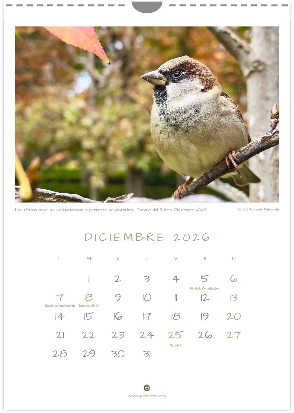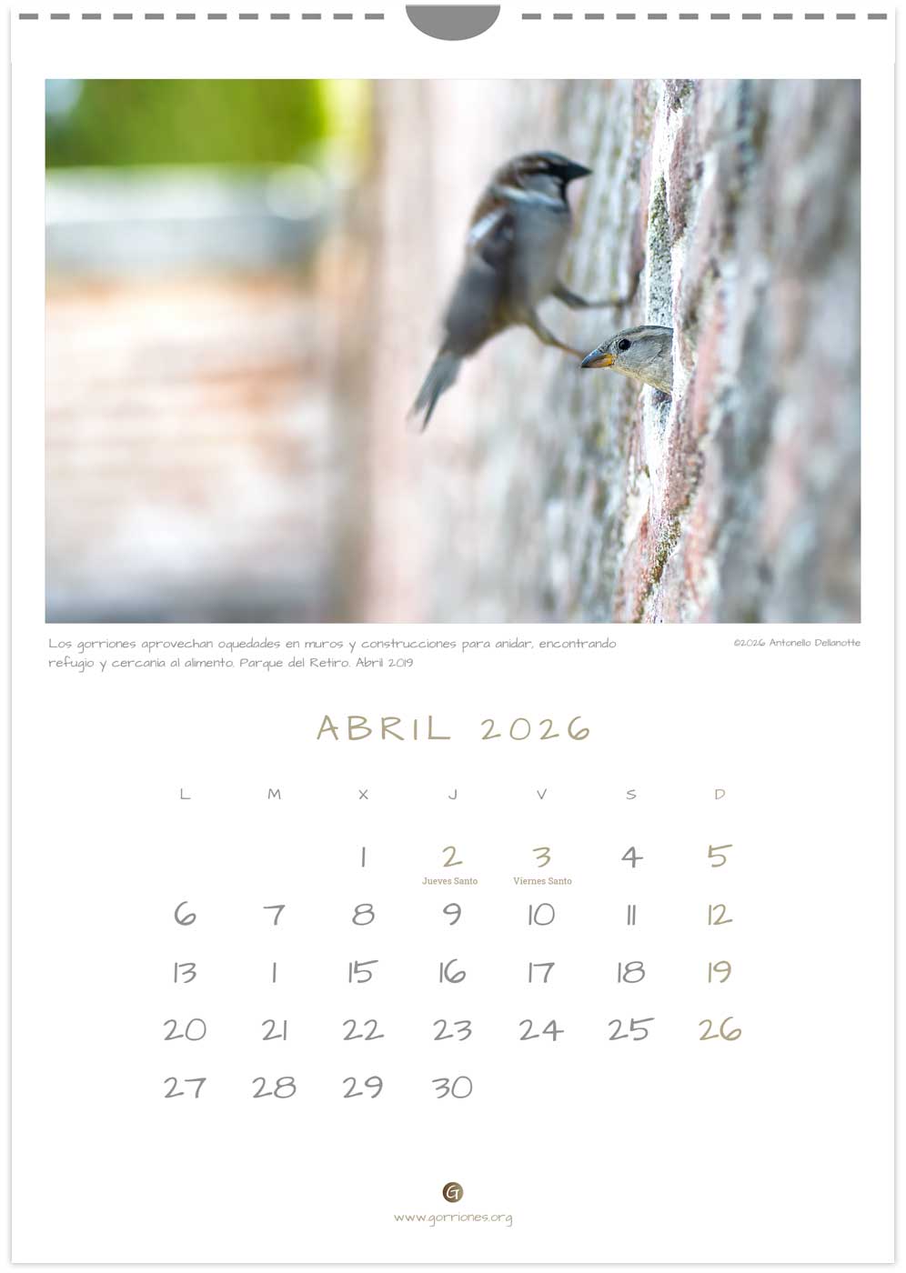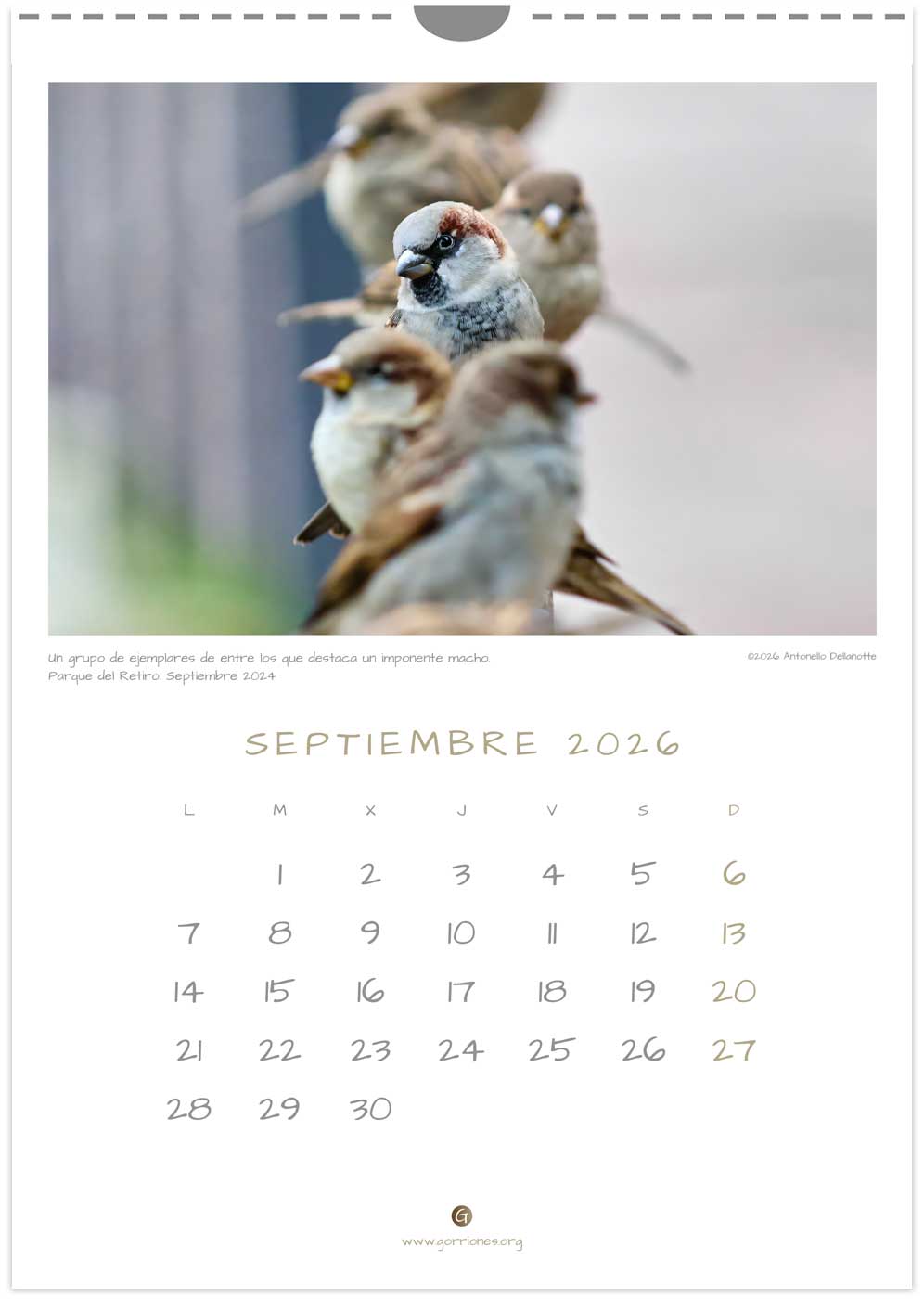 Calendario Gorriones.org 2026