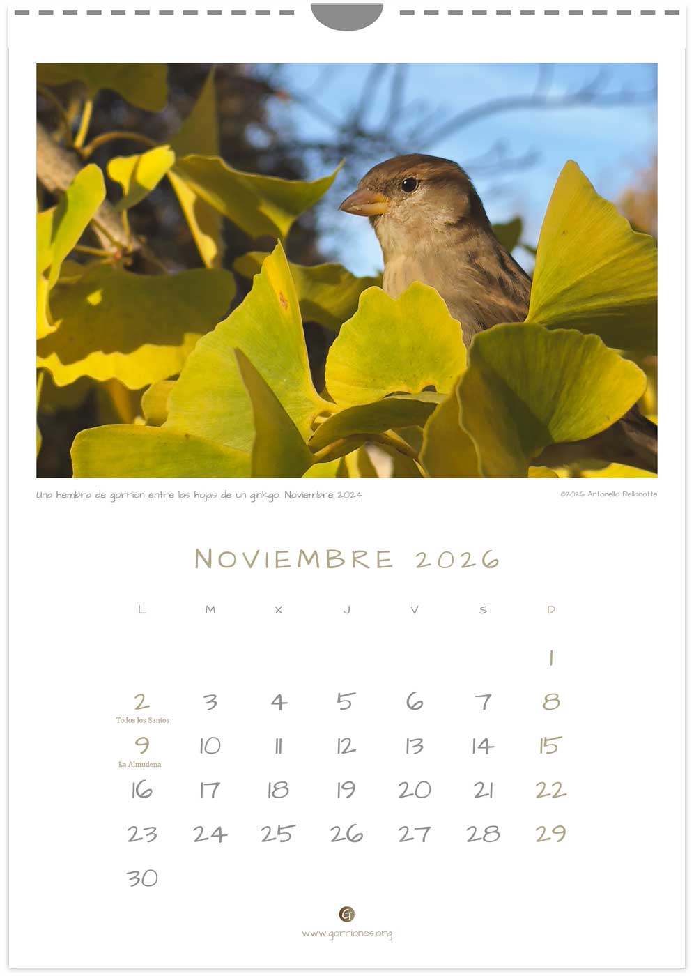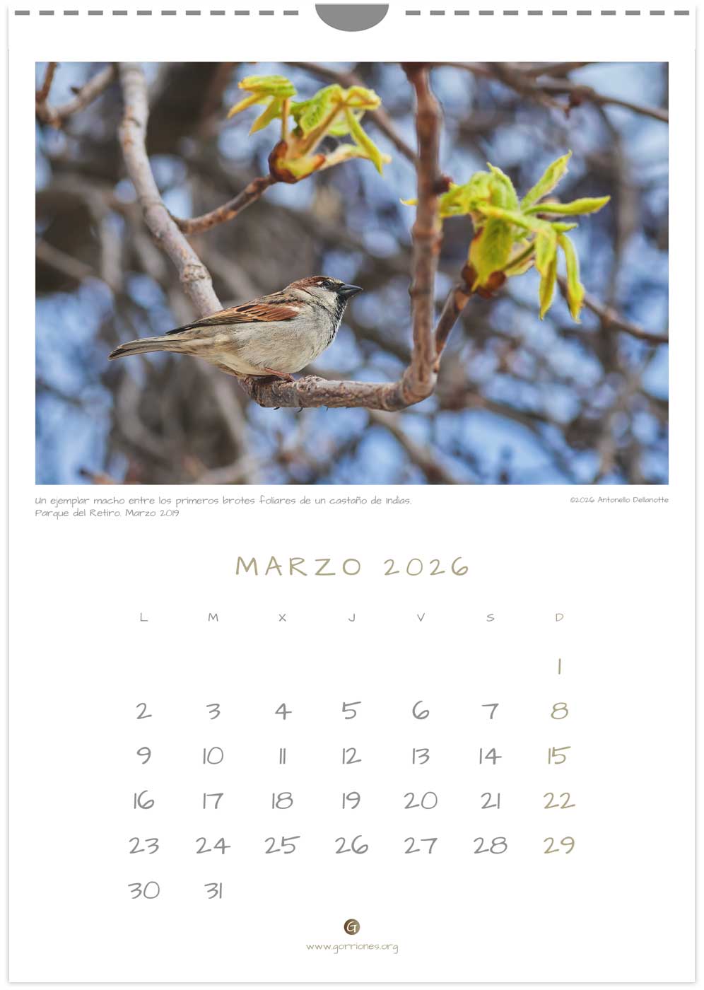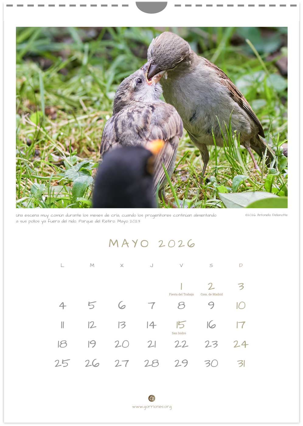 Calendario Gorriones.org 2026