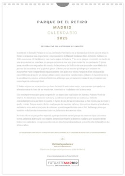 Sumérgete en la belleza del parque más importante de Madrid, Patrimonio Mundial desde 2021 como parte del Paisaje de la Luz. Antonello, como «Cronista del Retiro» es quien mejor conoce este espacio único y probablemente quien más lo ha fotografiado en los últimos años. Estos calendarios ofrecen una experiencia singular, con ediciones de lujo, producción artesanal y detalles excepcionales.